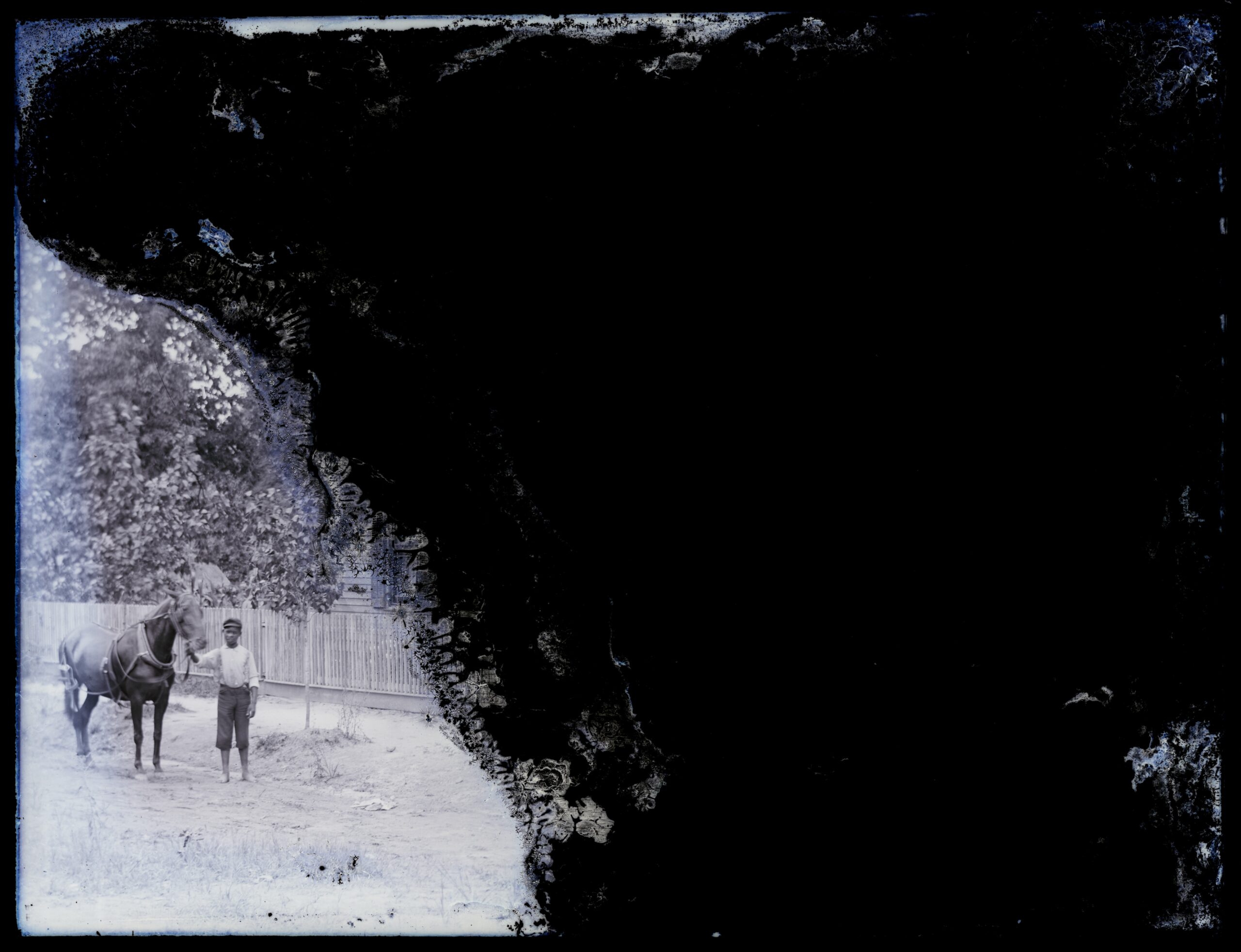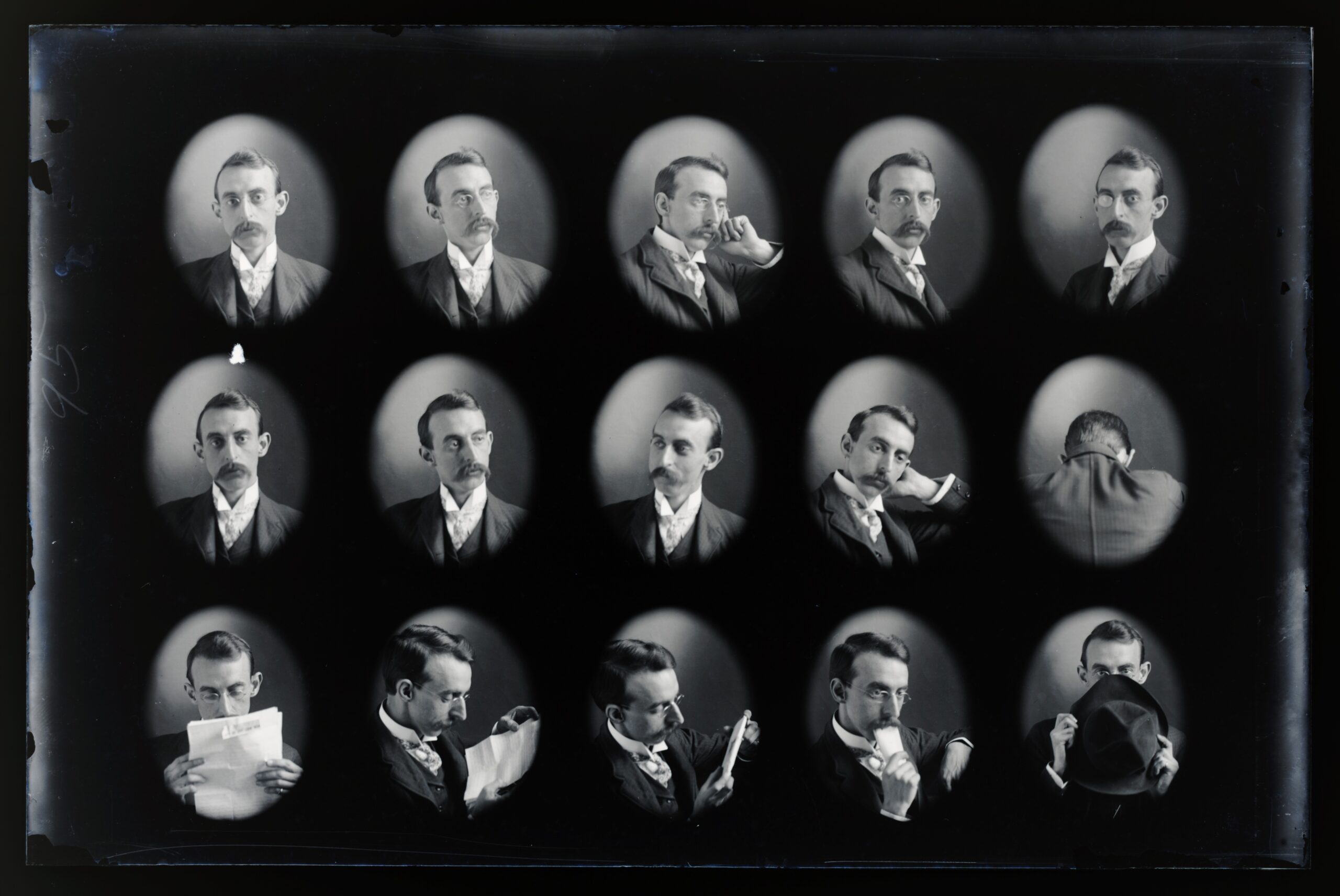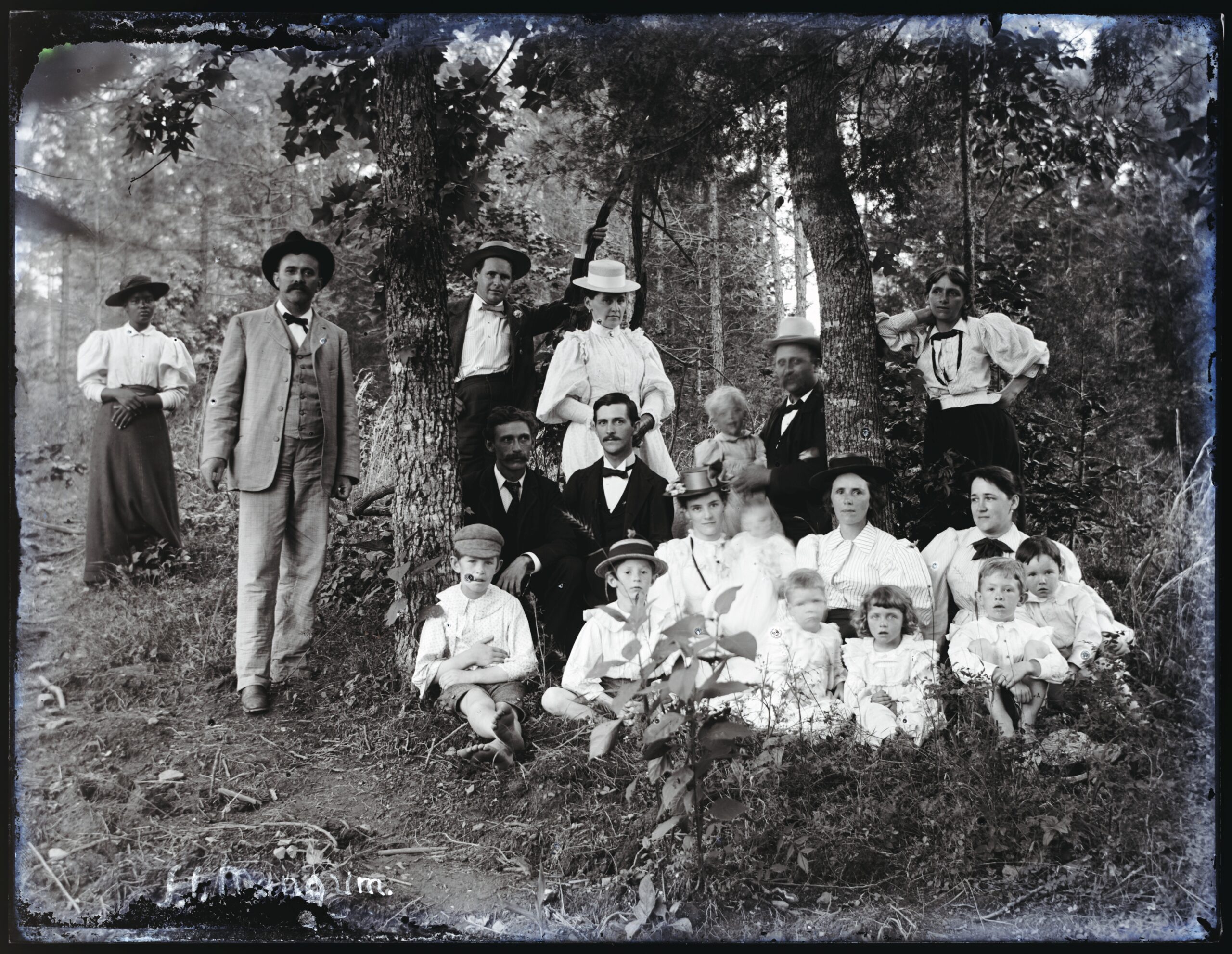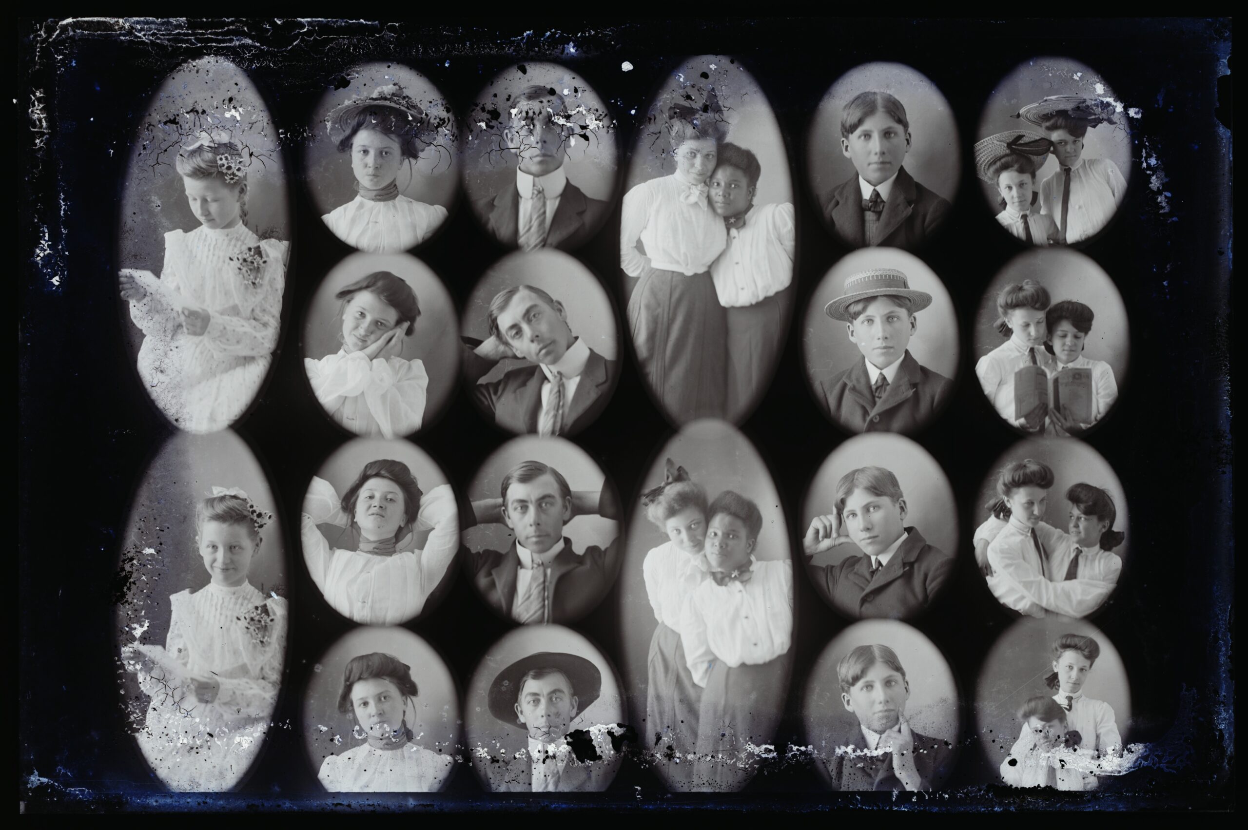 Hugh Mangum was a traveling photographer working in North Carolina and Virginia at the turn of the twentieth century, offering portraits for pennies from temporary studios in Durham, Roanoke, Charlottesville, and other towns. Mangum kept busy, visiting eight to ten different towns a year, frequenting women’s colleges and military universities and setting up shop near train depots and circuses. He would return to Durham to work at his Cottage Studio for months between his forays into more rural areas. Mangum’s work was largely unknown until the late 1970s, when a cache of glass-plate negatives was discovered in a family barn fifty years after the photographer’s death.