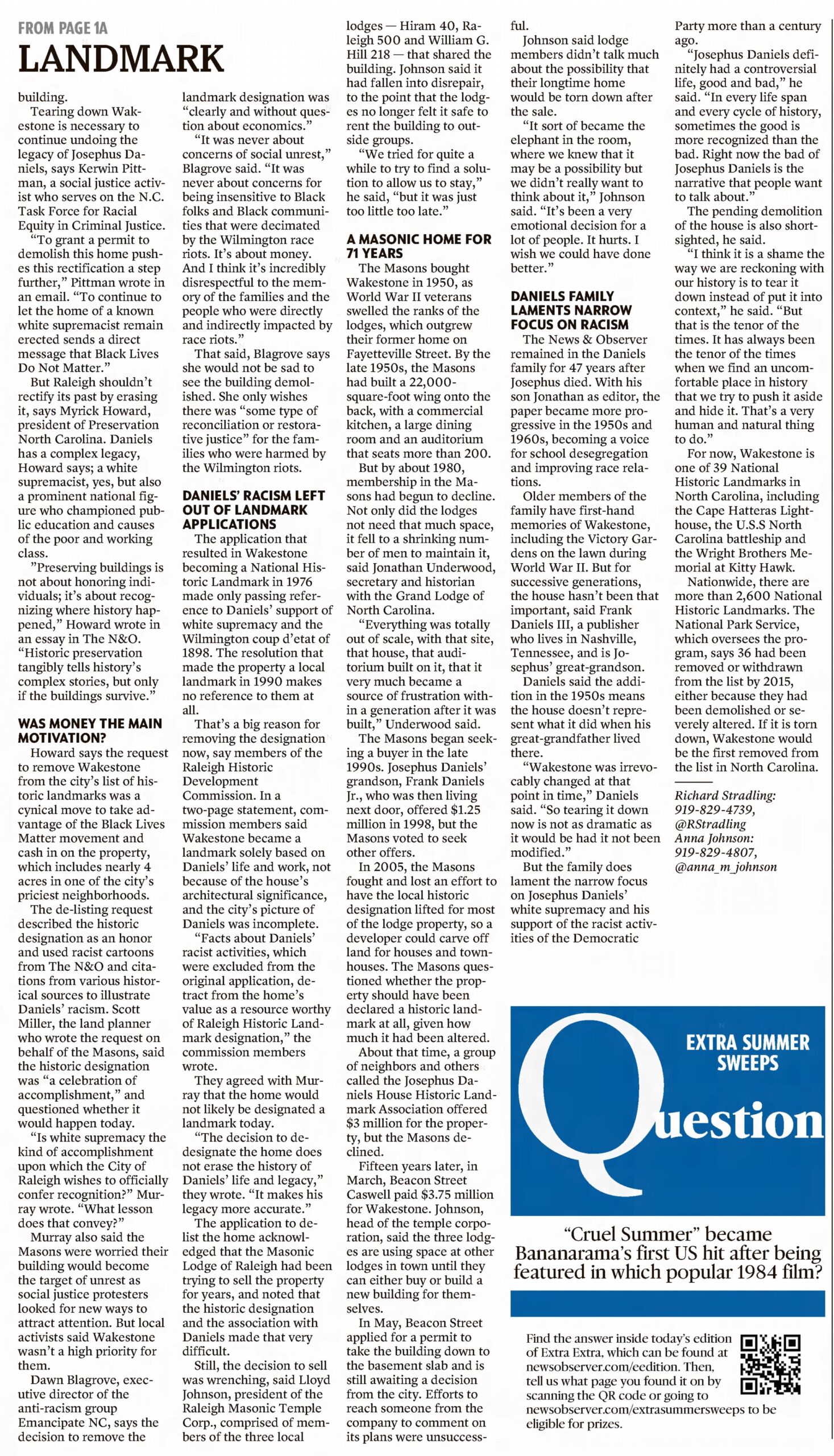 That’s a big reason for removing the designation now, say members of the Raleigh Historic Development Commission. In a two-page statement, commission members said Wakestone became a landmark solely based on Daniels’ life and work, not because of the house’s architectural significance, and the city’s picture of Daniels was incomplete.