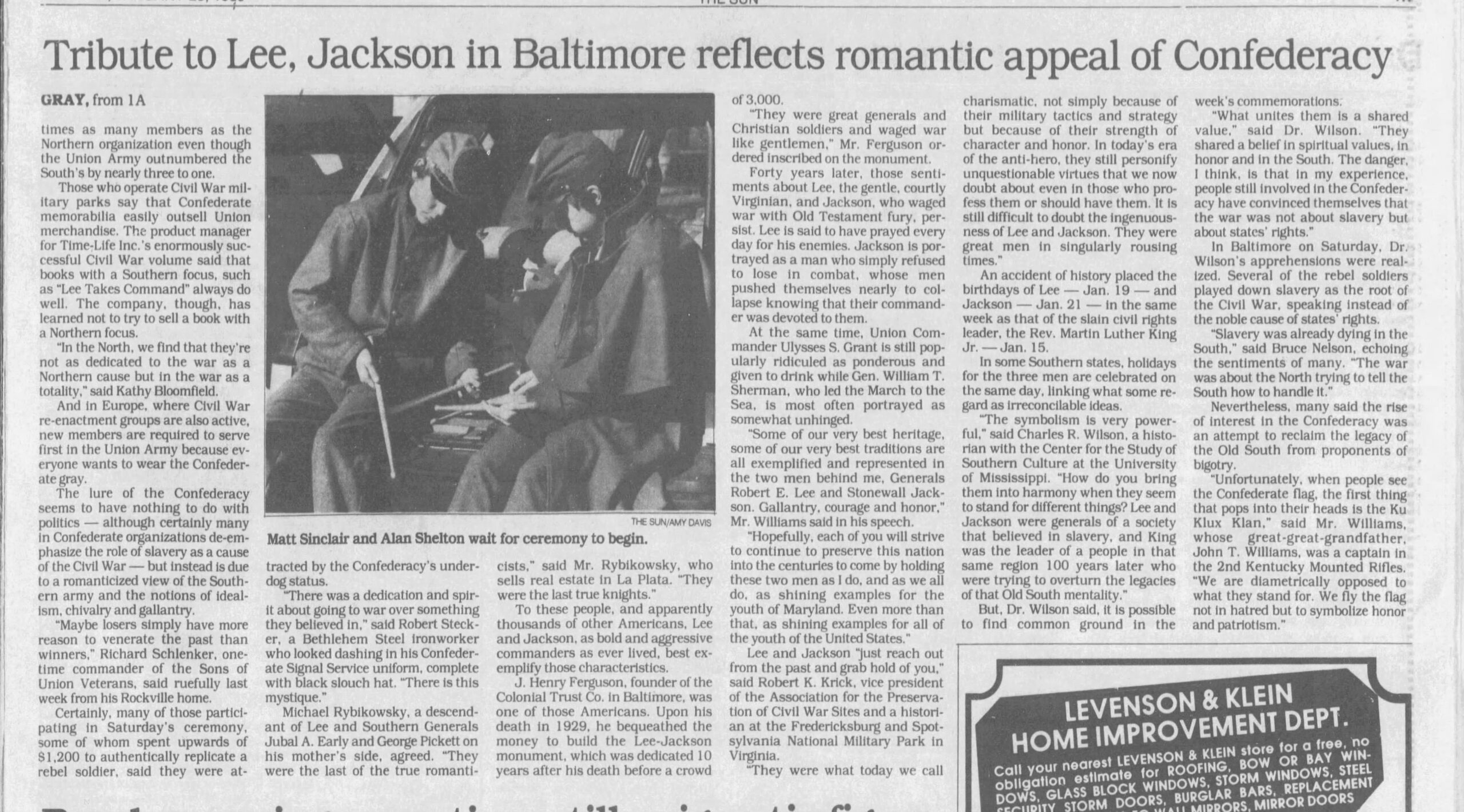 “Maybe losers simply have more reason to venerate the past than winners,” Richard Schlenker, onetime commander of the Sons of Union Veterans, said ruefully last week from his Rockville home.