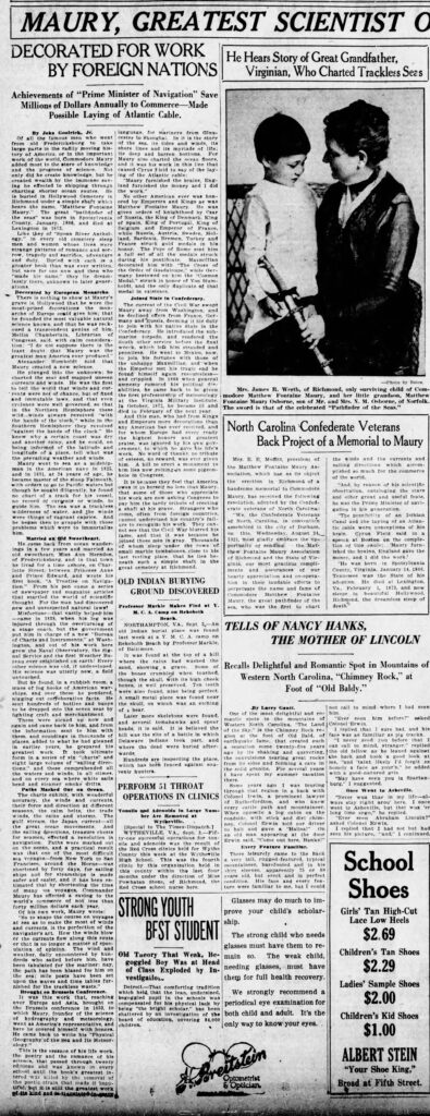 “We, the Confederate Veterans of North Carolina, in convention assembled in the city of Durham, on this, Wednesday, August 24. 1921, most gladly embrace the opportunity of sending n the. Matthew Fontaine Maury Association of Richmond and the State of Virginia, our most gracious compliments and assurances of our hearty appreciation and cooperation in their laudable efforts to perpetuate the name and fame of Commodore Matthew Fontaine Maury, the great pathfinder of the sea, who was the first to chart the winds and the currents and sailing directions which accomplished so much for the commerce of the world.